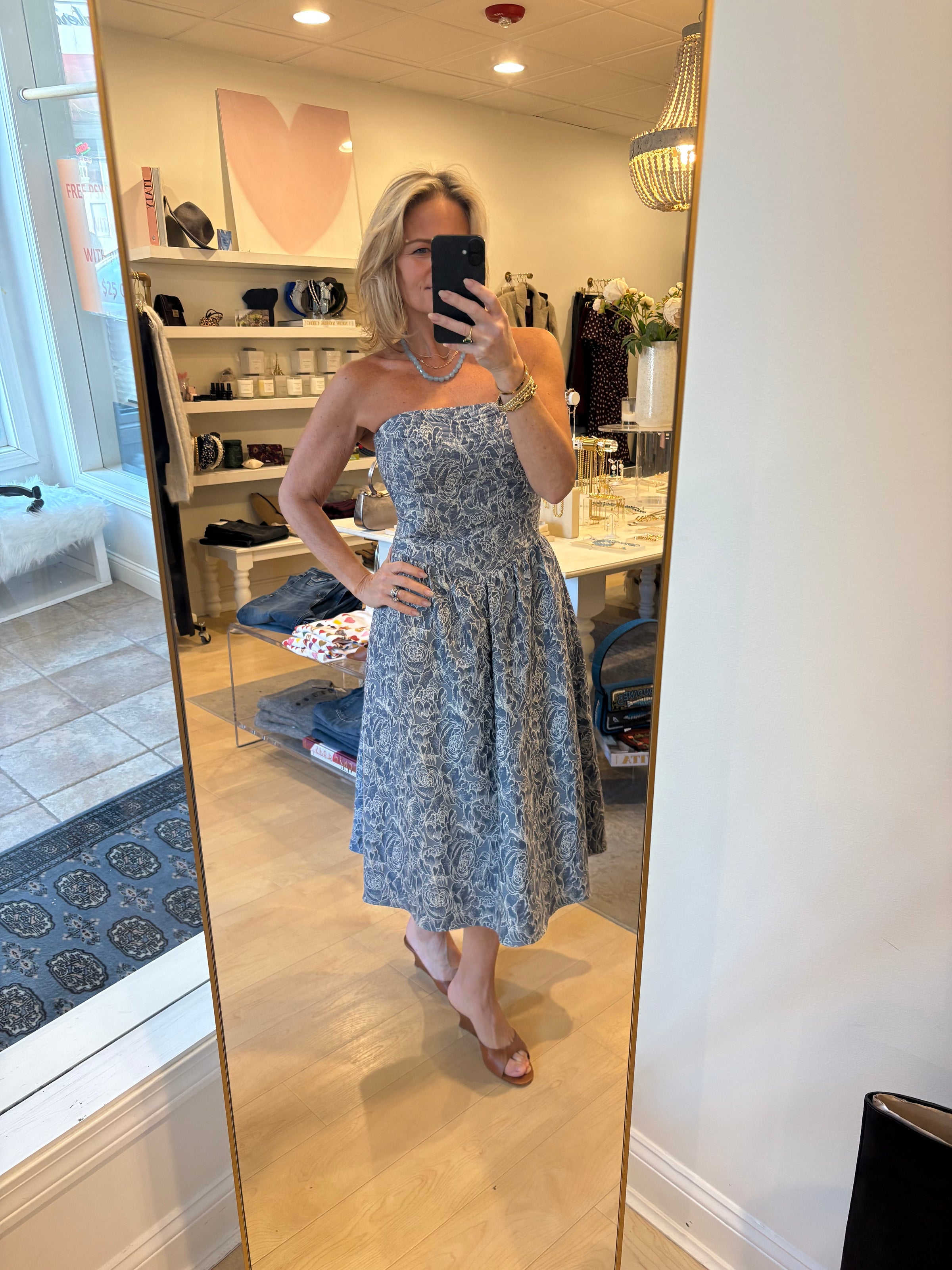 Luanna Dress ~ Multi Floral Denim