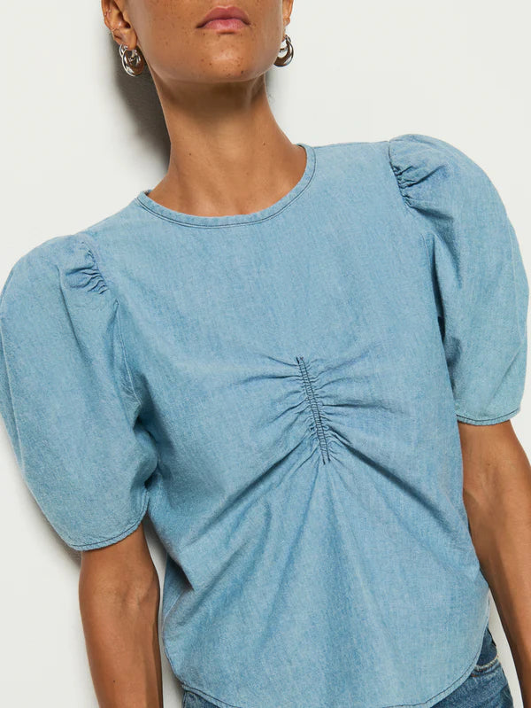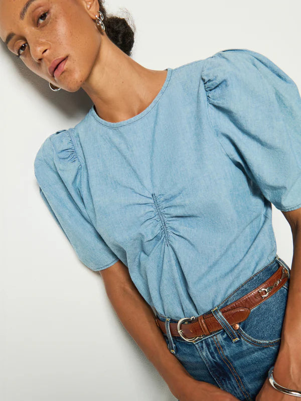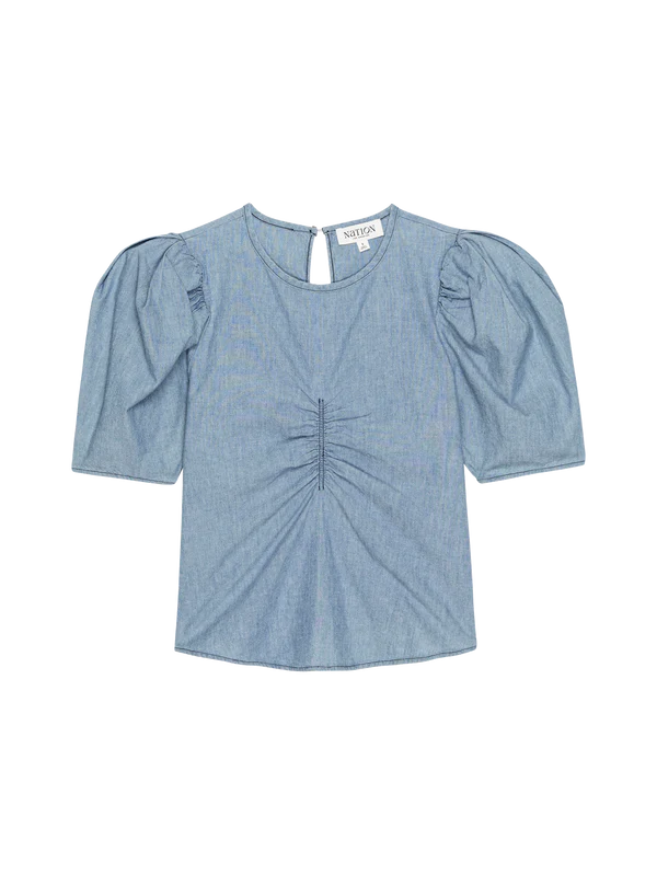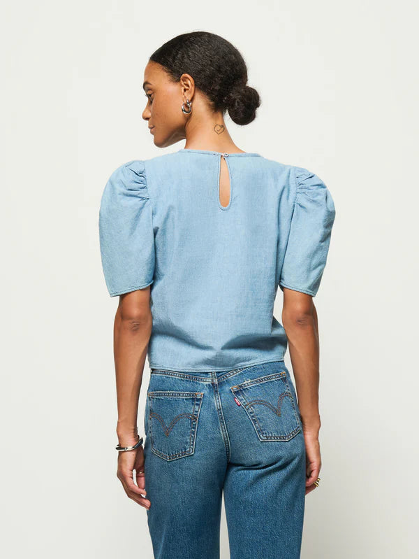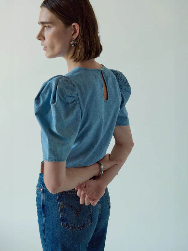 A flared silhouette and inverted pleat details are the star with this one, plus comfortable straps and a left-side invisible zipper make it easy as can be. Dress it up, dress it down, you decide. This one comes in Blue Chambray Faded Blue.