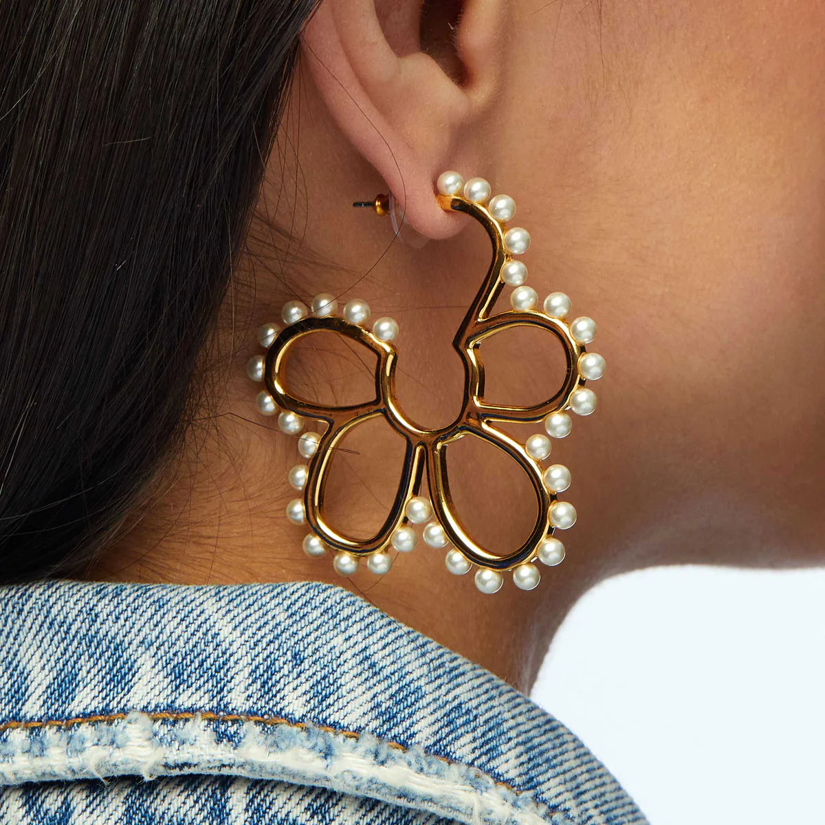 LELE's floral pearl hoops. Lightweight and wearable from day to night.