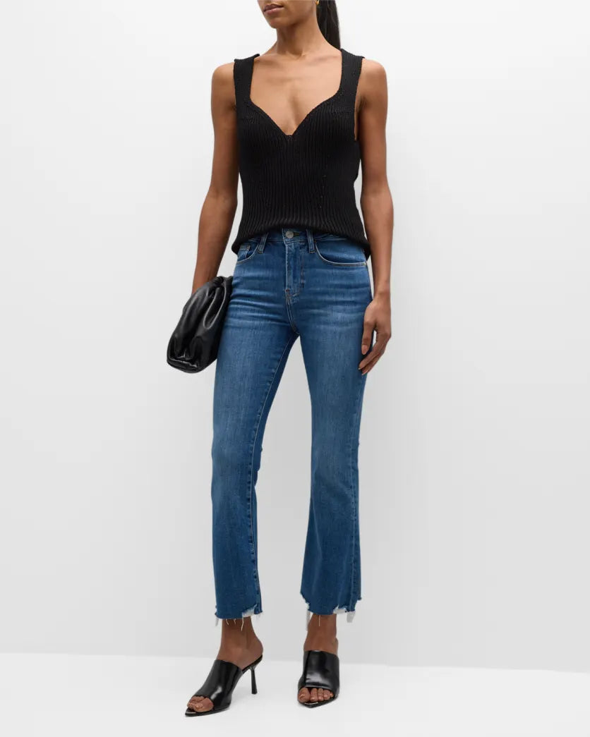 - FRAME "Le Crop Mini Boot" jeans with a raw hem in medium-wash denim