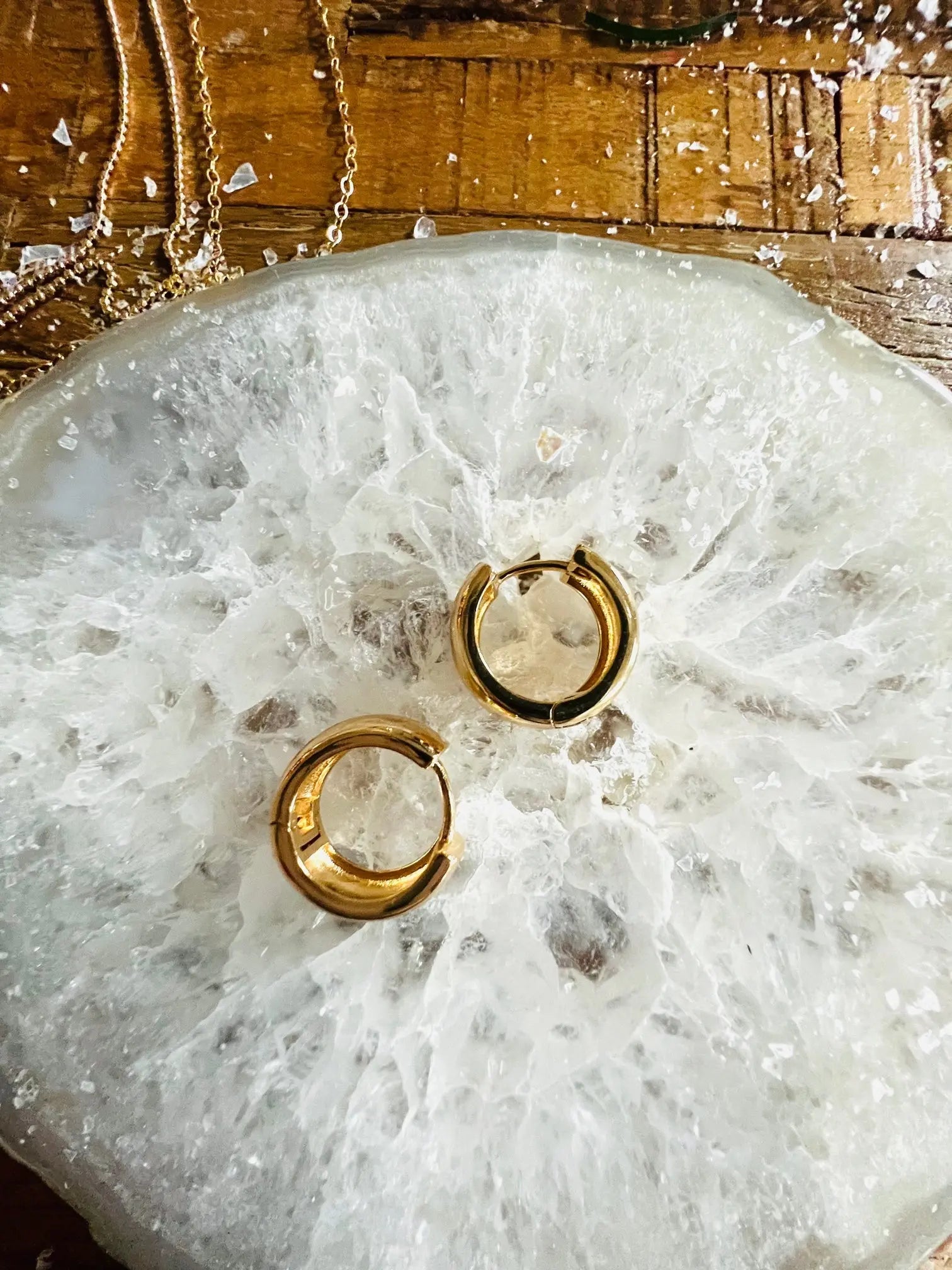 Adorable gold plated chunky snap hoops, shiny. you'll love these on trend moto hoops