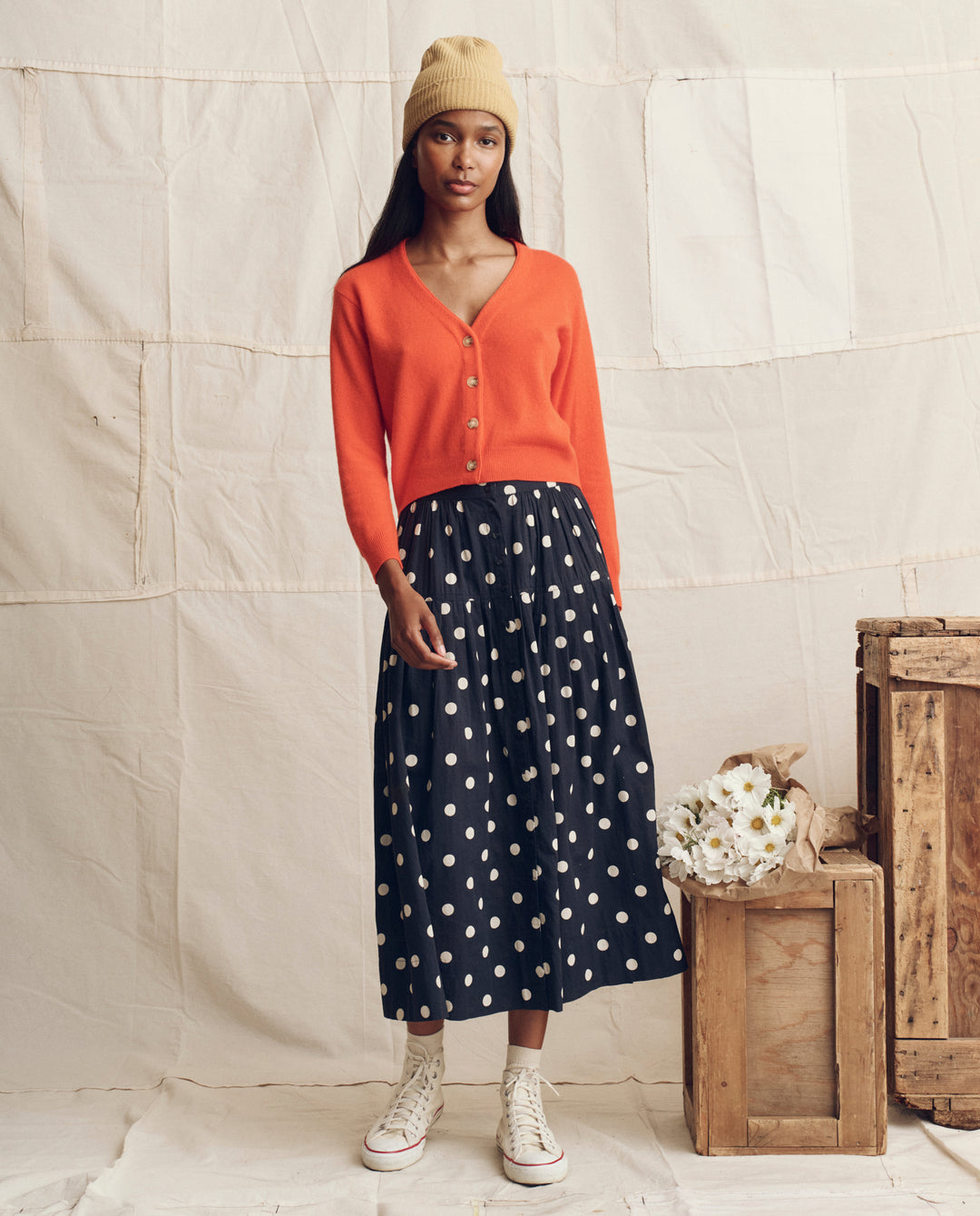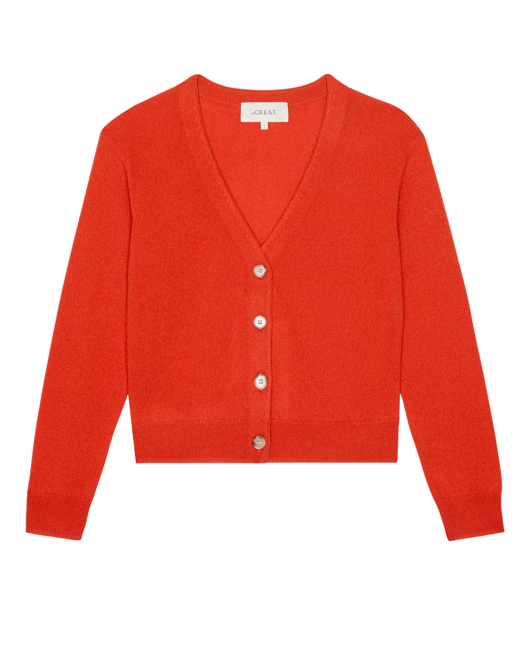 The Cashmere Tiny V-Neck Cardigan is inspired by vintage menswear cardigans, reimagined in smaller proportions. The silhouette is boxy with a cropped body length and sleeves designed to hit just above the wrist. It features a classic V-neckline with a clean finished edge, horn buttons, and delicate ribbing at the cuffs and hem. Knit from lightweight, soft cashmere with a cozy hand.