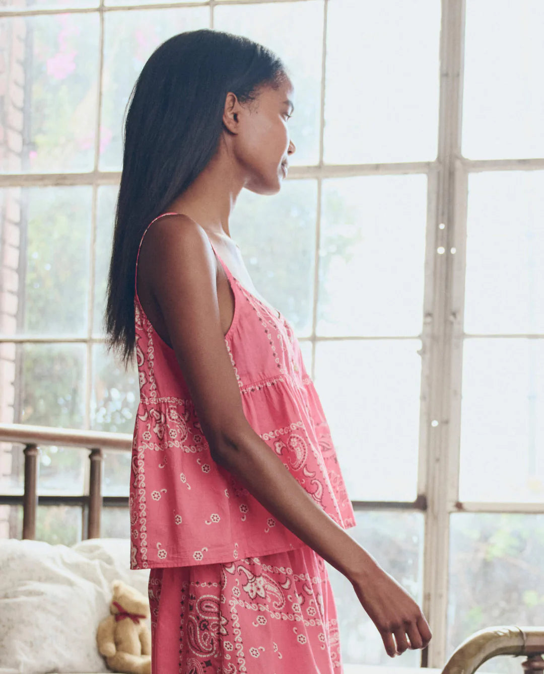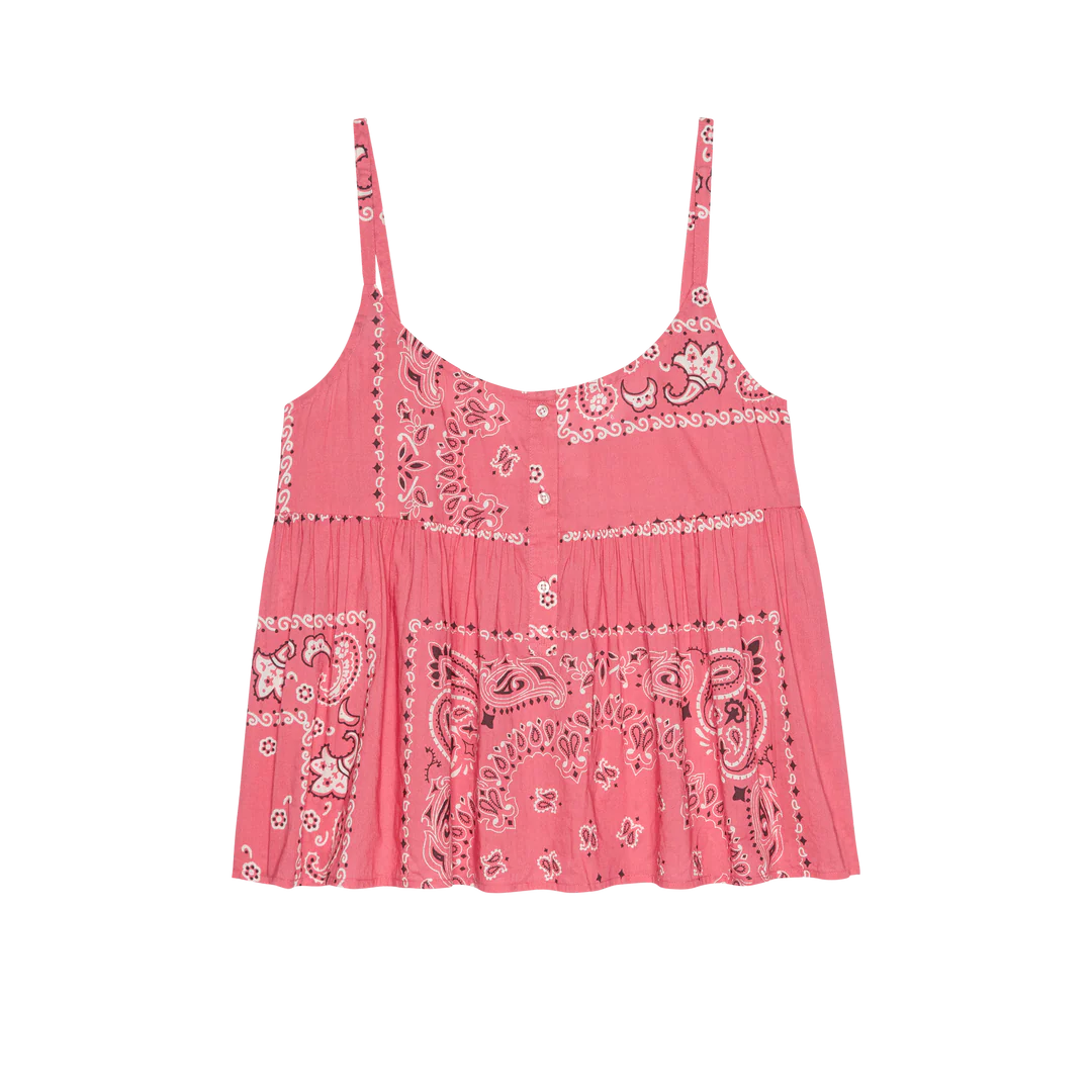 The Nighttime Cami. is relaxed yet elegant. In a flattering and flowy silhouette crafted from the softest 100% cotton and printed in this season's Pink Bandana Patchwork. It features a scooped front and back neckline, dainty straps, and a swingy hem for added ease. Pair it back to its matching sleep bottom for a coordinated bedtime set.