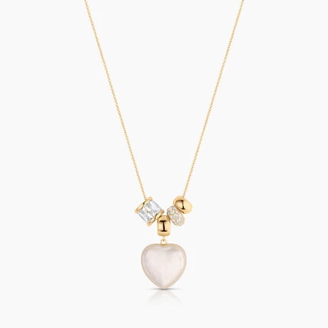 Materials: 14k gold plated, hand-carved mother of pearl, cubic zirconia