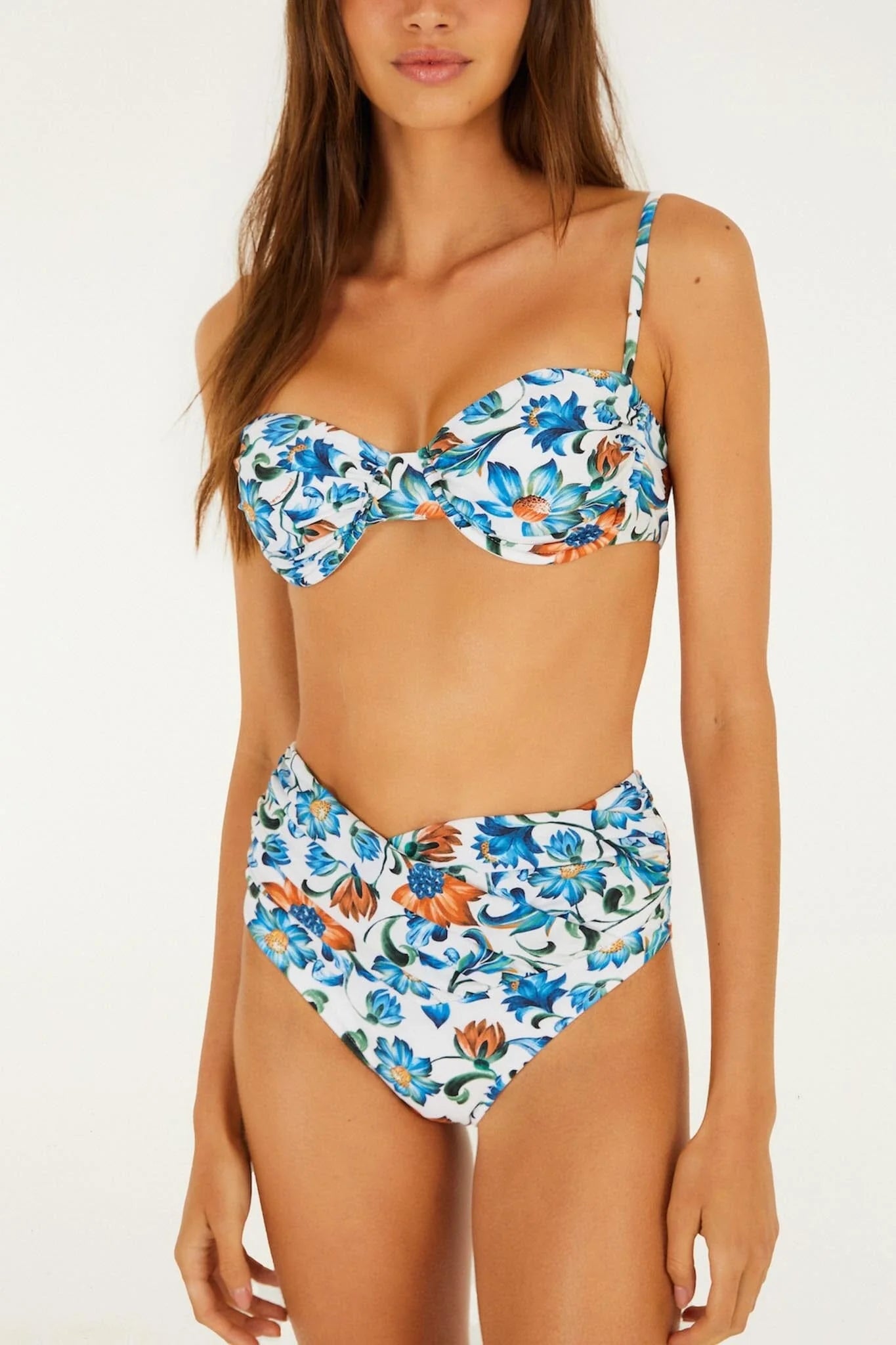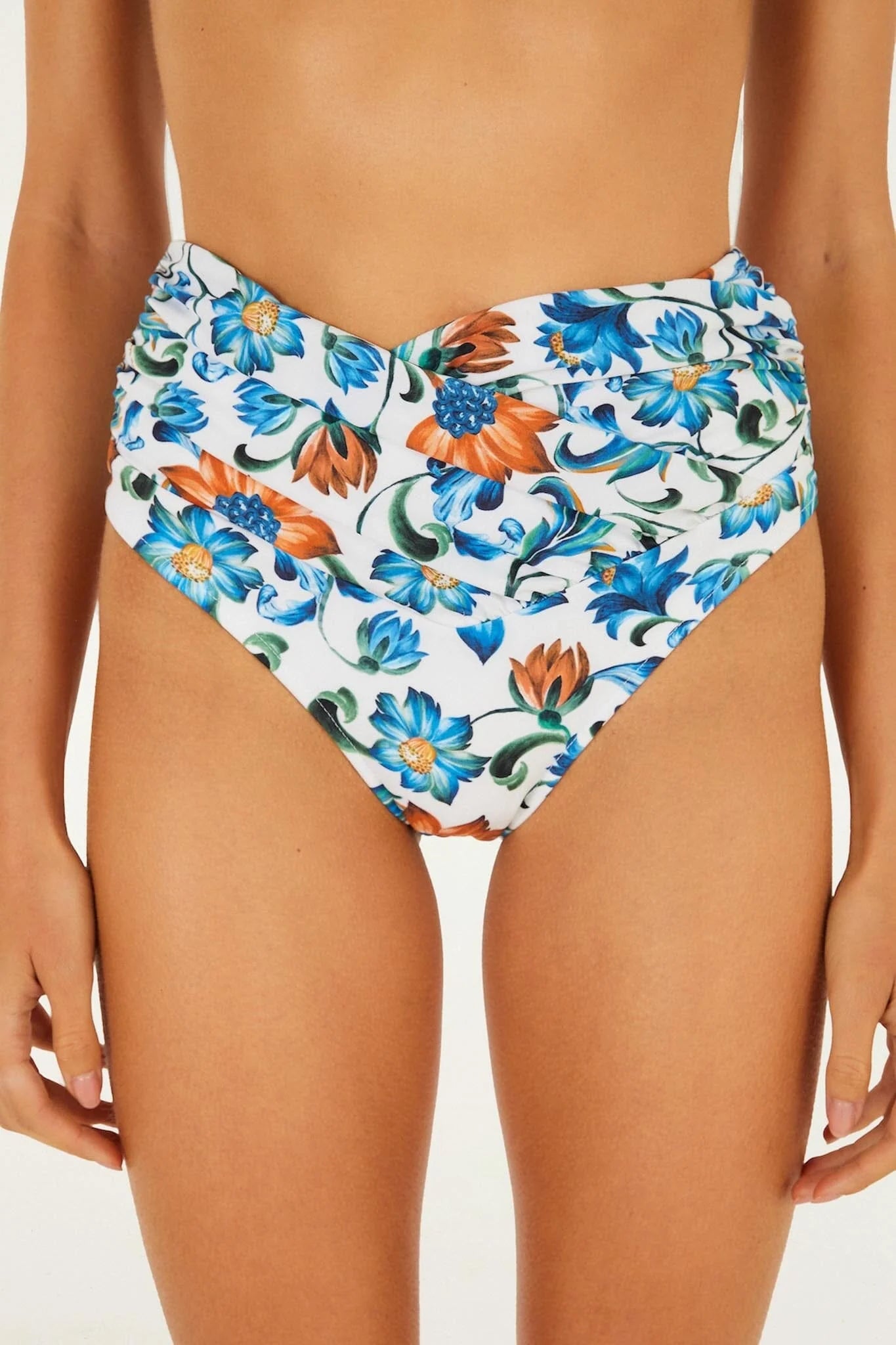 Dive into effortless beach charm with the Off-White Flora Tile Hot Pants Bikini Bottom from FARM Rio. Its vibrant tile-inspired pattern dances across an off-white canvas, blending playful botanicals with geometric flair. The high-waisted cut sculpts a flattering silhouette, while soft, smooth fabric embraces your skin with gentle comfort. Perfectly balancing boldness and ease, this piece invites sunny adventures with a fresh, joyful spirit.