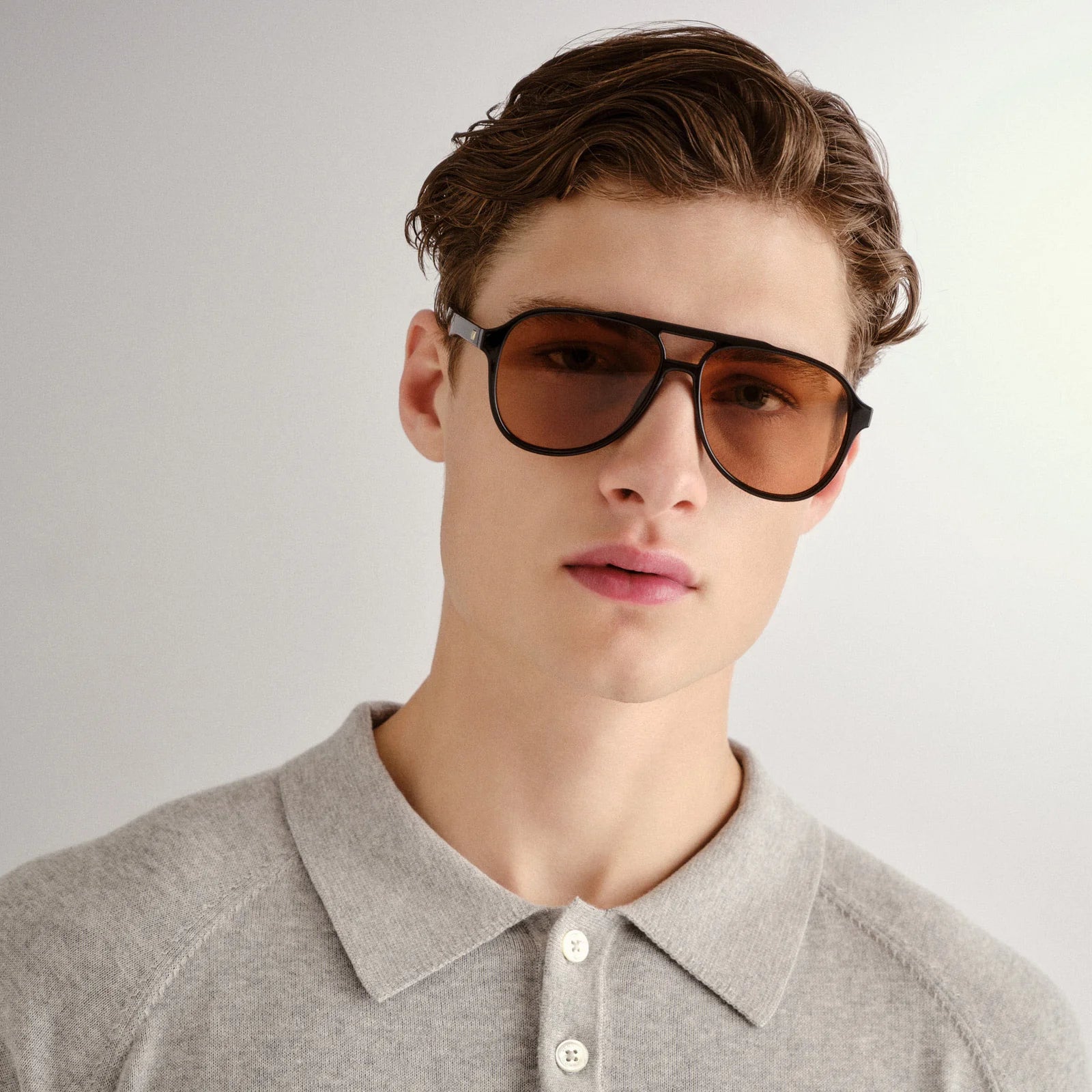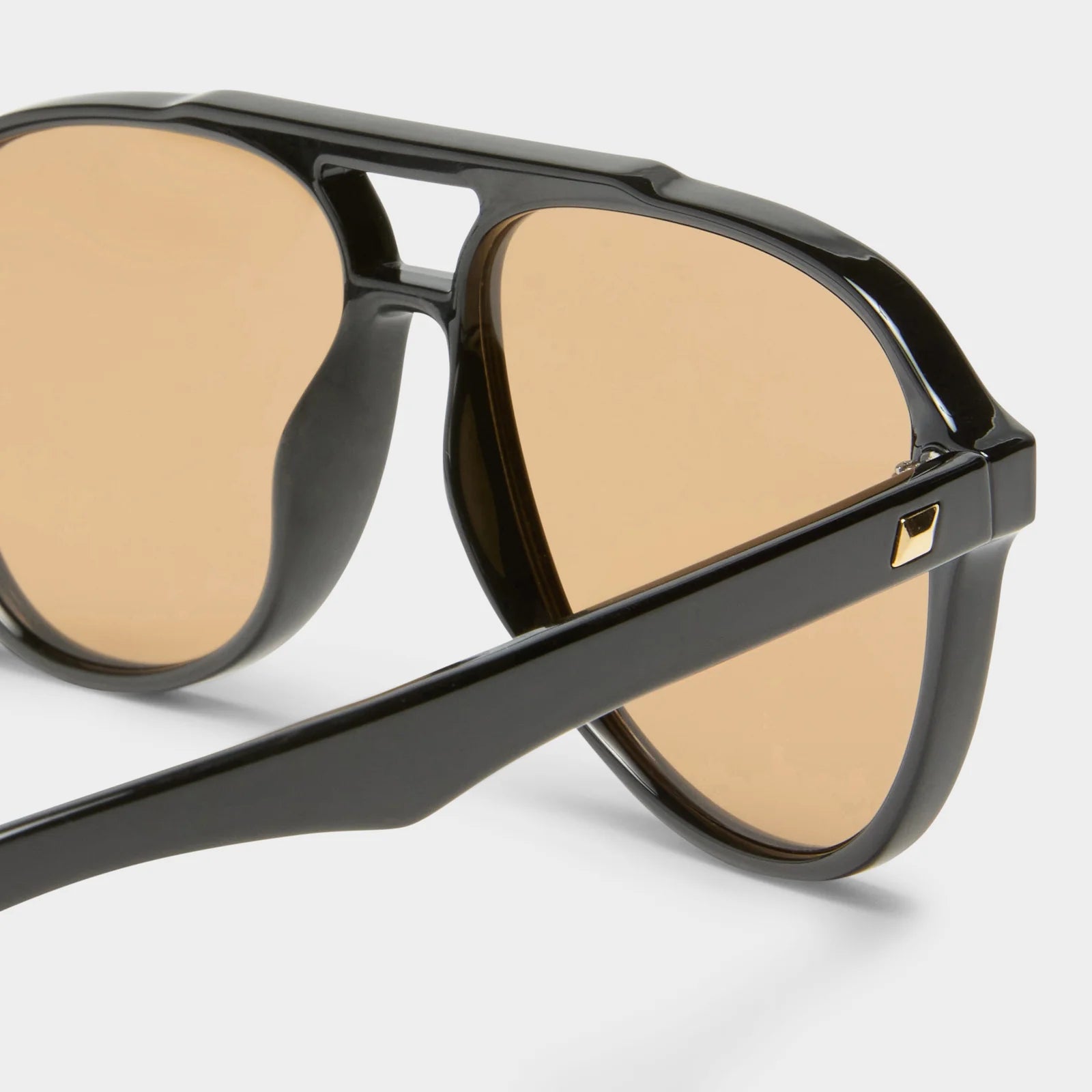 Finished in classic black with tan tinted lenses for a vintage '90s look.